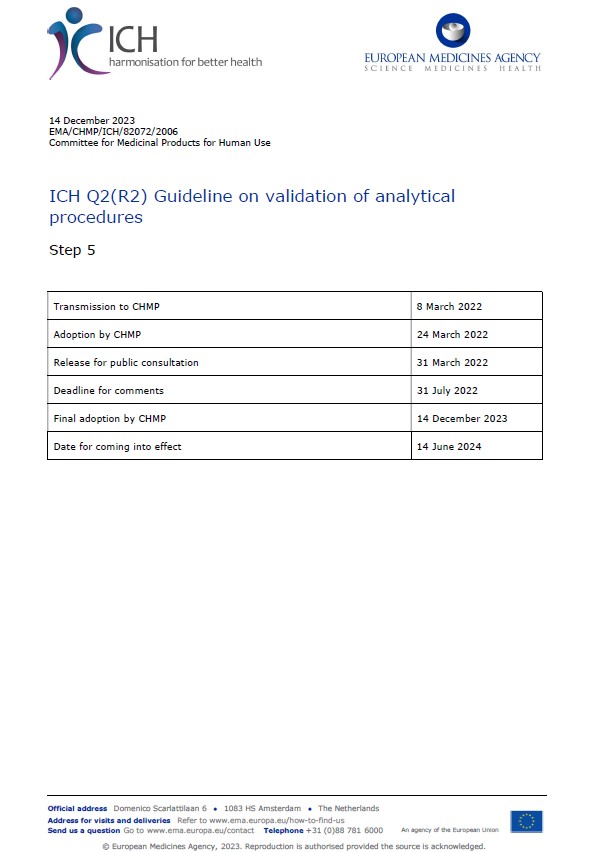 ICH Q2(R2) Guideline on Validation of Analytical Procedures